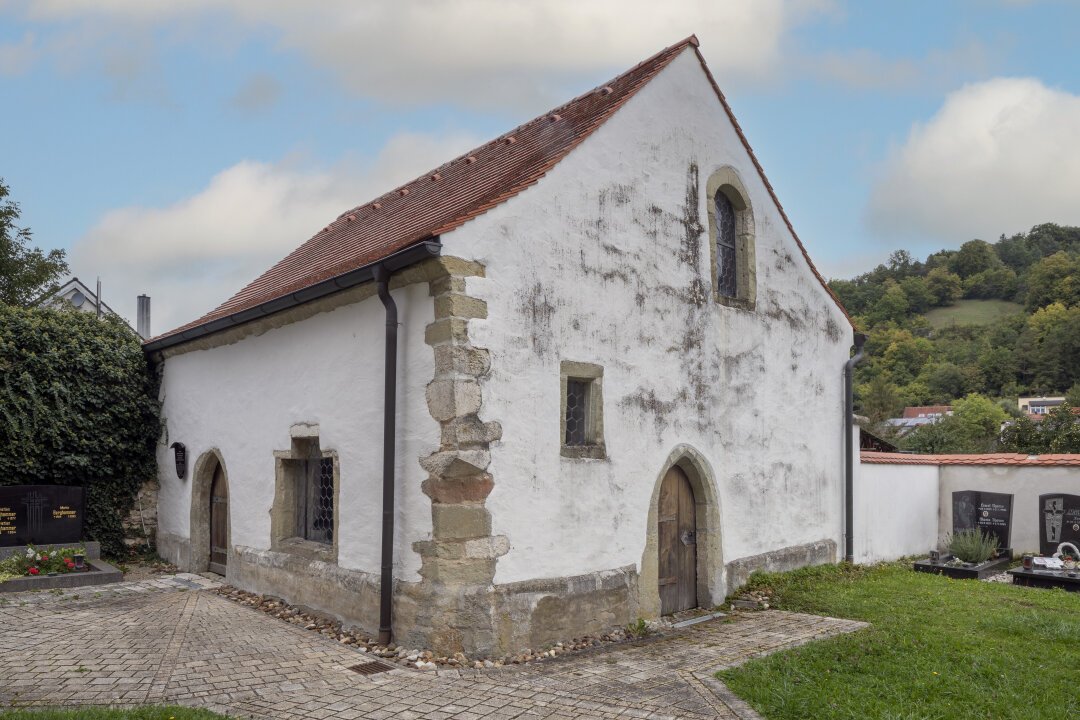 Südlich außerhalb des Haupthauses befindet sich die Seelenkapelle mit bemalter Holzdecke und Sandsteinaltar aus dem 15./16. Jahrhundert